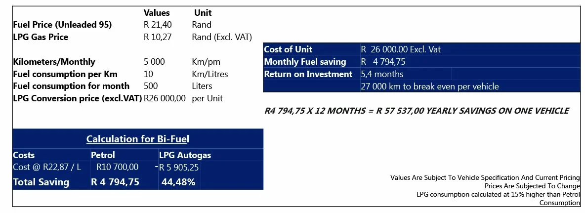 Prototype sample (Fuel and LPG Prices were used at the time of Print) and current prices will be used upon enquiry.