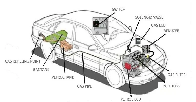 This includes a separate LPG tank, piping, injectors, LPG filter and converter, and a dedicated ECU, allowing your vehicle to run on either petrol or gas.